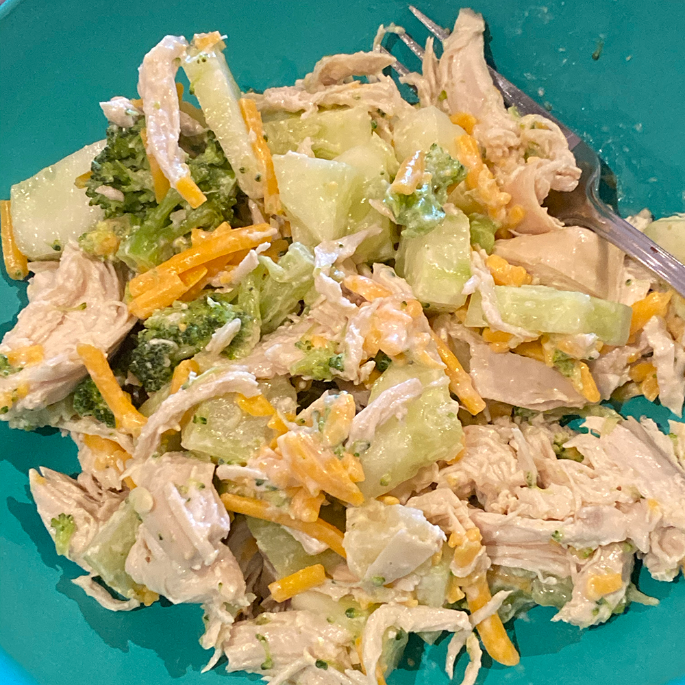 Cucumber chicken salad with broccoli and sour cream