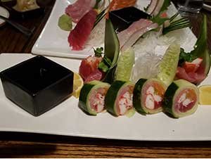 Special mention to dining out. This is Sashimi and a rice free sushi roll. I brought my own coconut aminos to use in place of soy sauce. Surprisingly Sashimi is not as filling as it looks. I ate all of this.