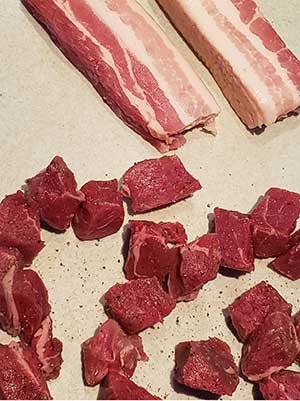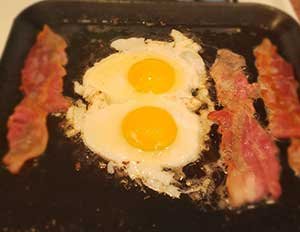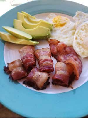 Figure 12 Bacon wrapped steak bites, 2 fried eggs and avocado slices
