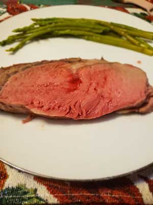 This was a holiday meal. Prime rib with steamed asparagus topped with butter. Our other holiday favorite is salmon with bacon wrapped asparagus. (no picture taken of that meal since I ate it too fast)
