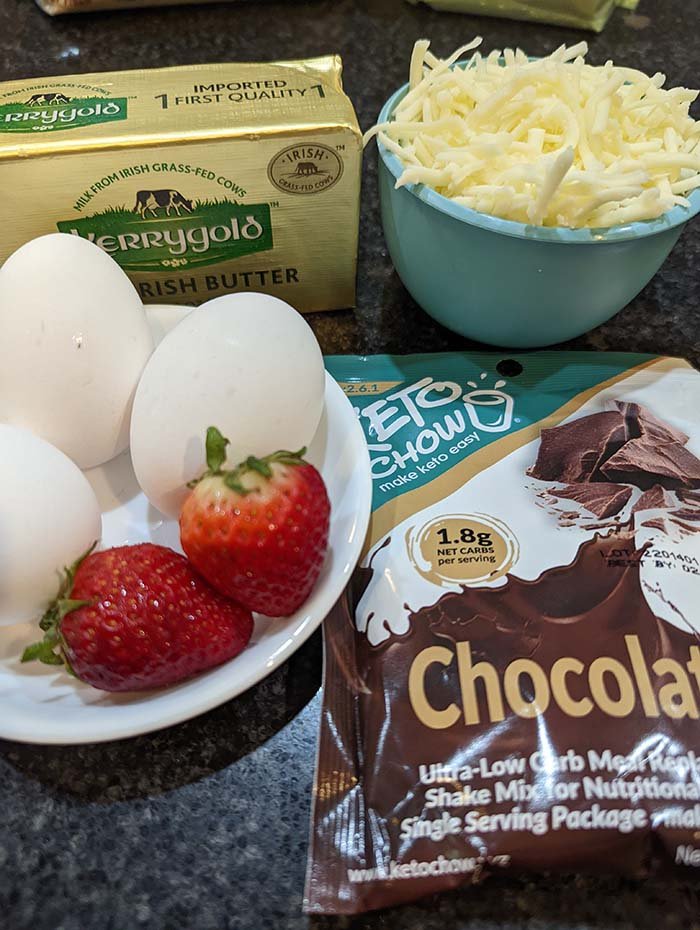 I recently bought a starter pack of Keto Chow Shakes meal replacement drink mix pouches. Eyeing those pouches I wondered, could I use those as a basis for a quick dessert? A quick google search showed that yes indeed they can be used in recipes for Chaffles, Mug Cakes, Ice Cream, Popsicles, Cheesecake bars etc.