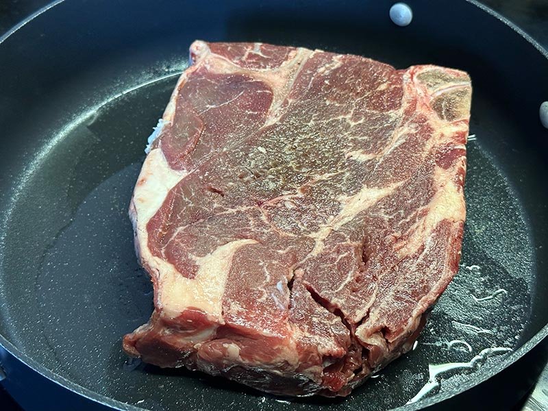 This cooking process is perfect for tougher cuts of meat. A shoulder blade beef roast is shown but any roast that is 2"- 3" will work.