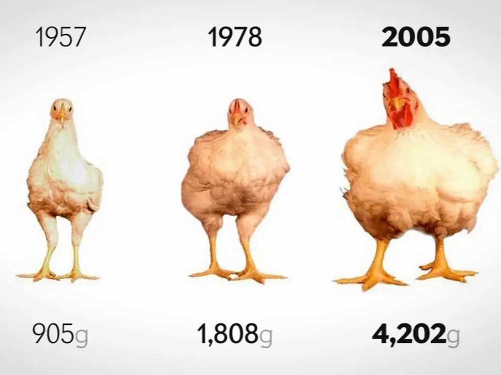 The chicken you are eating has increased 364% in size over the last 50 years.
