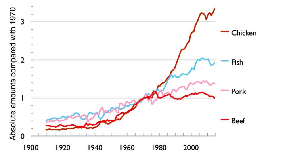 Contrast this to the 1960s, where chicken was considered a delicacy.