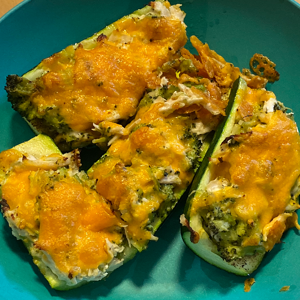 Zucchini boats with chicken and broccoli