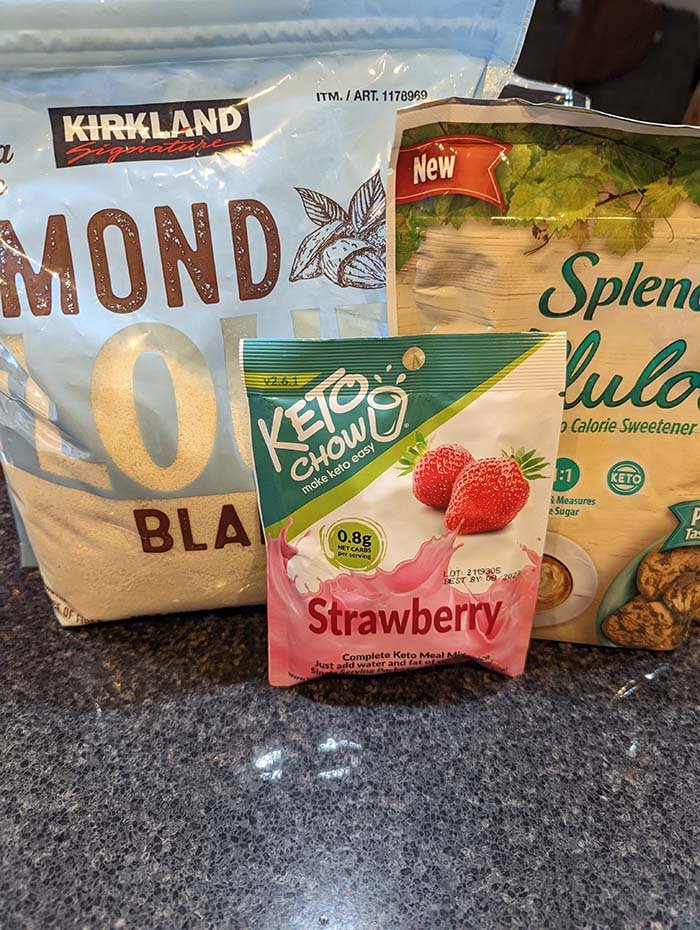 I recently bought a starter pack of Keto Chow Shakes meal replacement drink mix pouches. Eyeing those pouches I wondered, could I use those as a basis for a quick dessert? A quick google search showed that yes indeed they can be used in recipes for Chaffles, Mug Cakes, Ice Cream, Popsicles, Cheesecake bars etc.