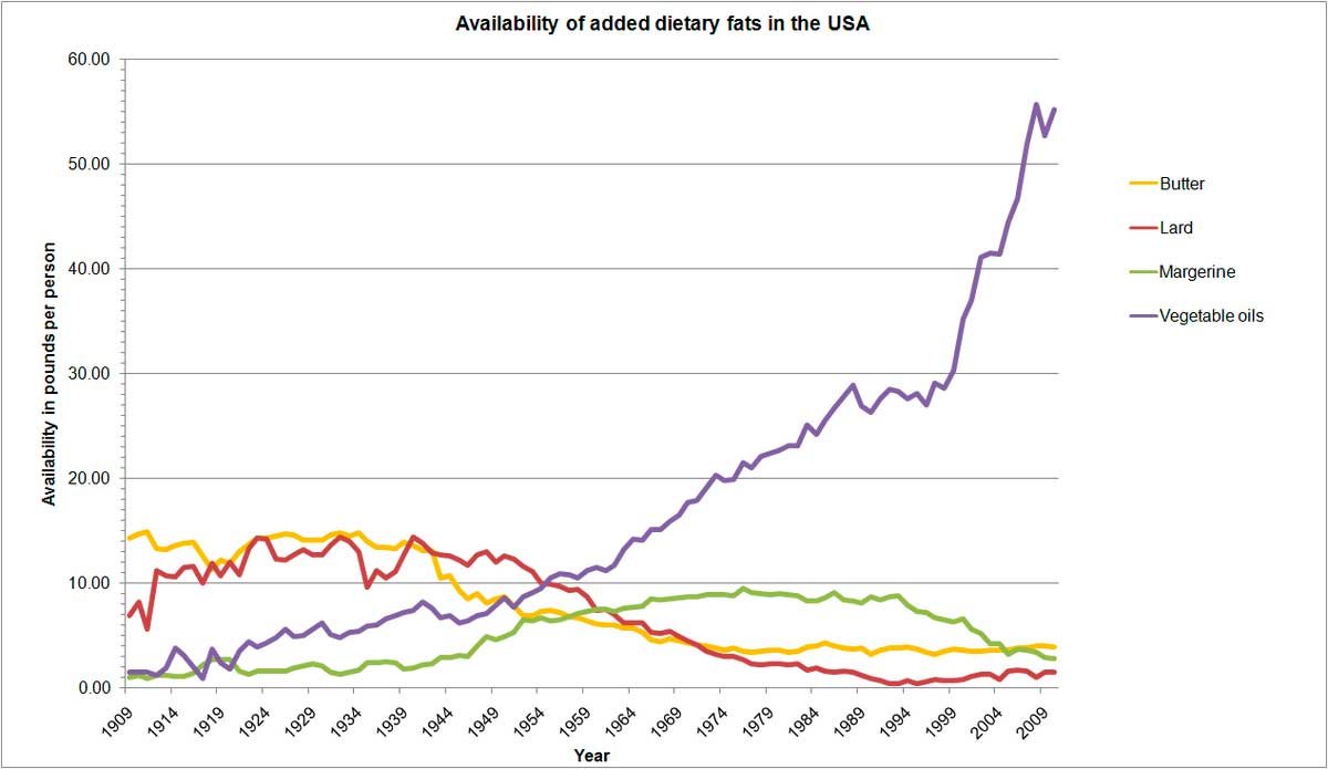 The low costs of these vegetable oils made them incredibly popular in American kitchens. CC: Dr. James DiNicolantonio Thank you for the great visual here.