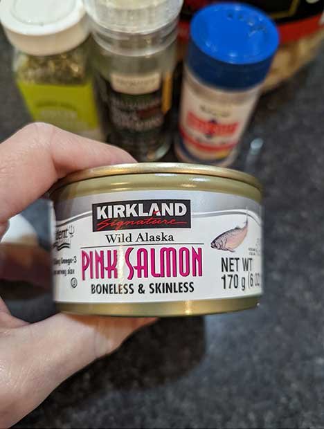 - 1 6oz (170g) can of Boneless & Skinless salmon. I love Kirkland Wild Alaska brand. Drained. *You can substitute canned tuna for the salmon.