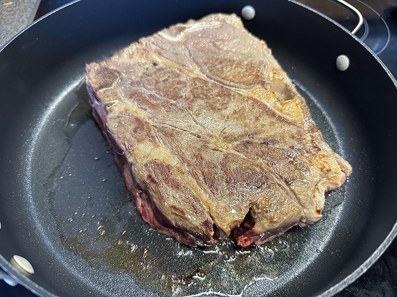 This cooking process is perfect for tougher cuts of meat. A shoulder blade beef roast is shown but any roast that is 2"- 3" will work.
