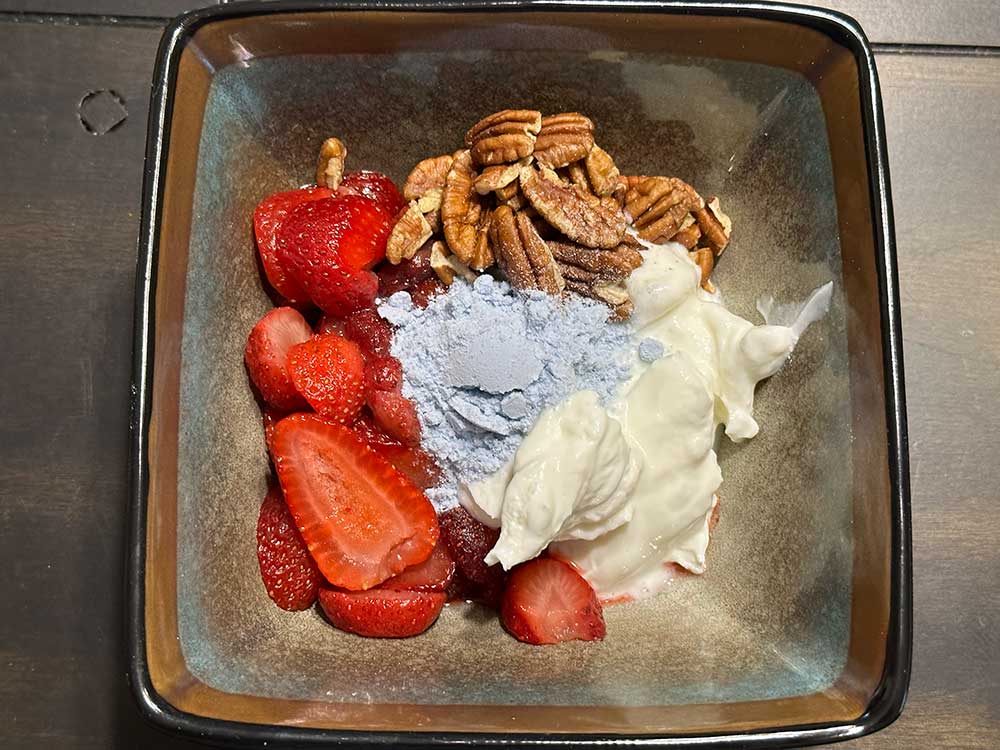 Last but not least, we have a strawberry pecan yogurt dessert. Similar to the raspberry version, but with a blueberry twist.