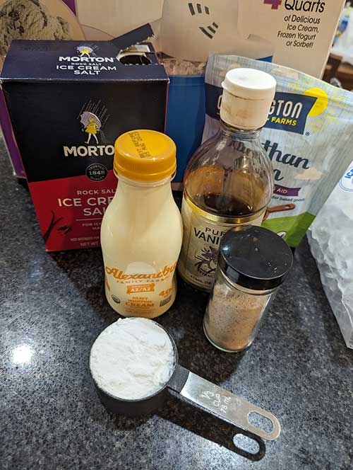 Don't forget the ice and rock salt for your ice cream maker.