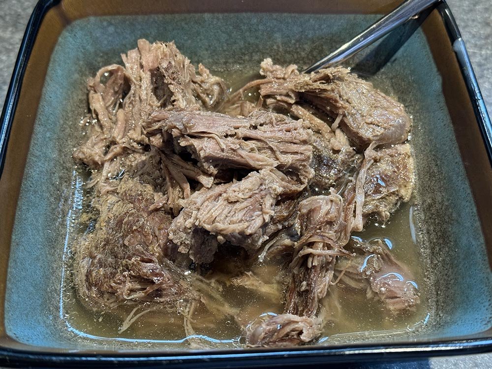 Another day with leftover blade roast. To my surprise, the cooled broth was jiggly like bone broth. I didn't expect that after cooking the blade roast for only 3 hours.