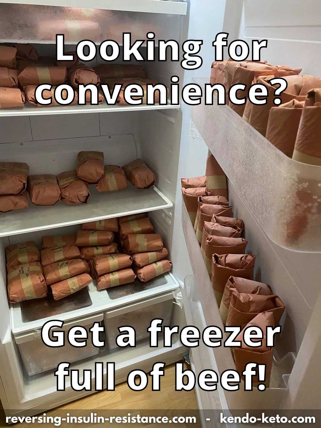 My advantage is that I love beef. I have a freezer full of beef, which is my convenience food.