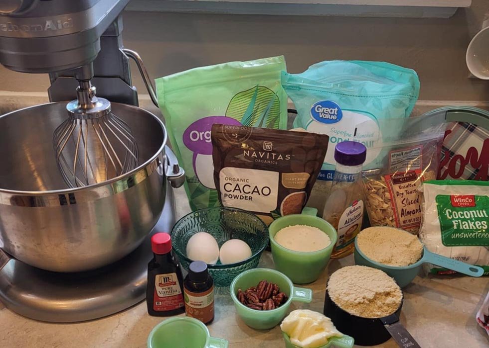 My mother-in-law made the best cake at Christmas. It used an entire box of Nilla Wafers, shredded coconut, sugar, and more. Oh, it was so good and so not on my keto diet. It was also a secret. She would not share the recipe with anyone. Except me. What an honor as a young bride to be given a recipe box with one recipe in it. The Famous Pecan Torte.